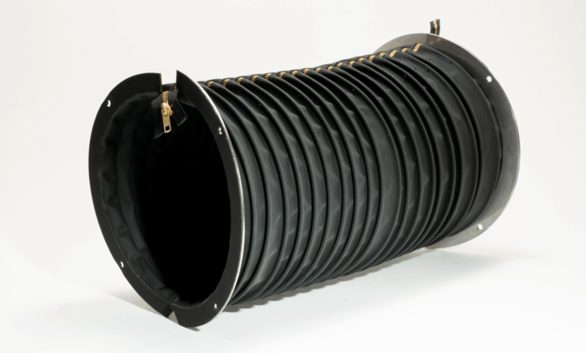 標準仕様は、ネオプレンクロス0.38とSUS製リングにて製作します。製作外径寸法は30φ~1000φまで、コーネックスなどの耐熱タイプも用意しております。